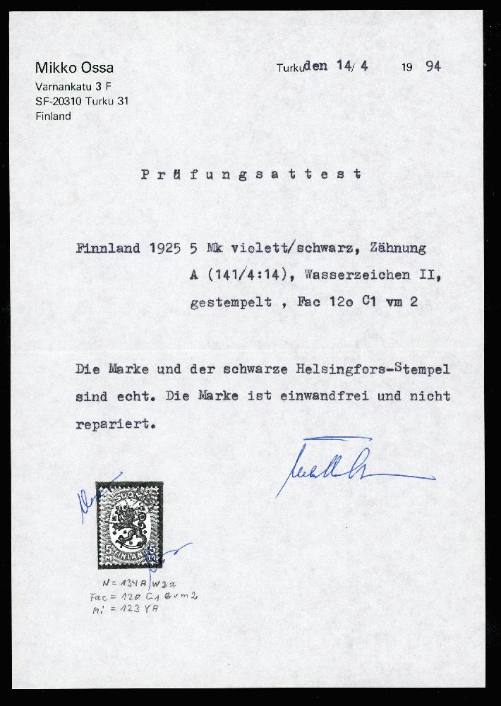 | Zusatzinformationen und Suchstichworte: | Klüttermann - 6. Auktion 27. Juli - 4. August 2023 Los 10792 Finnland 5 Mk. violett Wz. Y Zähnung A, tadellos gest., FA Ossa Katalogwert: 220 Ausruf 75,00 EUR |