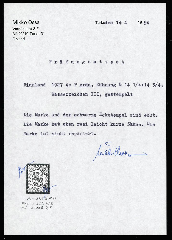 | Zusatzinformationen und Suchstichworte: | Klüttermann - 6. Auktion 27. Juli - 4. August 2023 40 P. Wz. Y Zähnung B, 2 kurze Zähne, sonst tadellos gest., FA Ossa Katalogwert: 650 Ausruf 140,00 EUR |