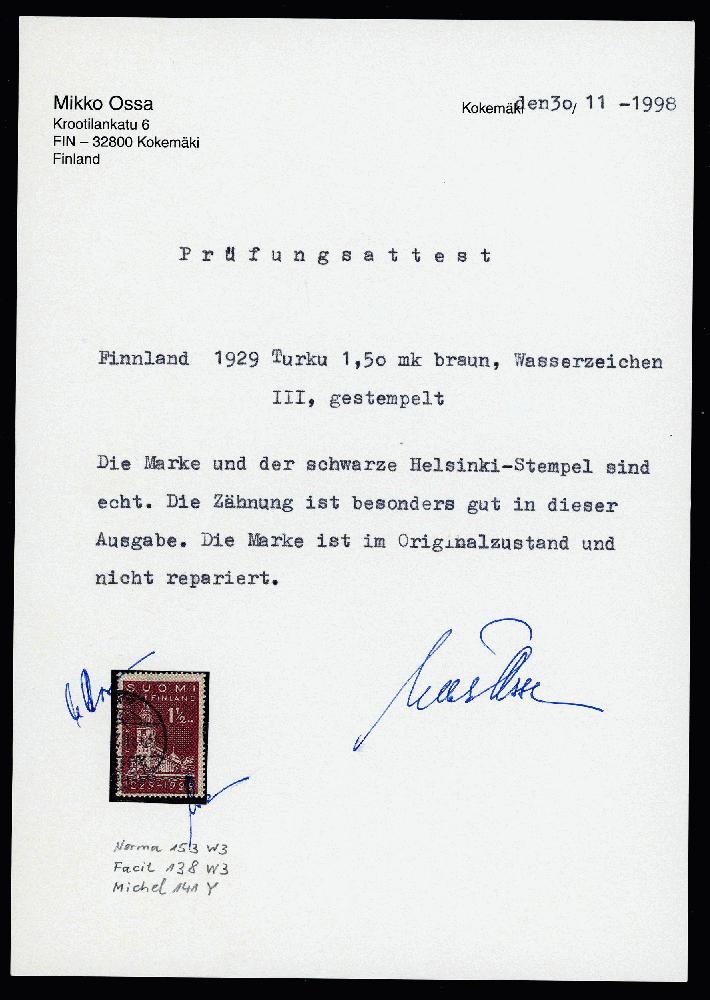 | Zusatzinformationen und Suchstichworte: | Klüttermann - 6. Auktion 27. Juli - 4. August 2023 Los 10811 Finnland 1 1/42Mk. mit dem seltenen Wz. 2Y, gestempeltes Luxusstück in besonders guter Zähnung, FA Ossa Katalogwert: 900 Zuschlag 320,00 EUR |