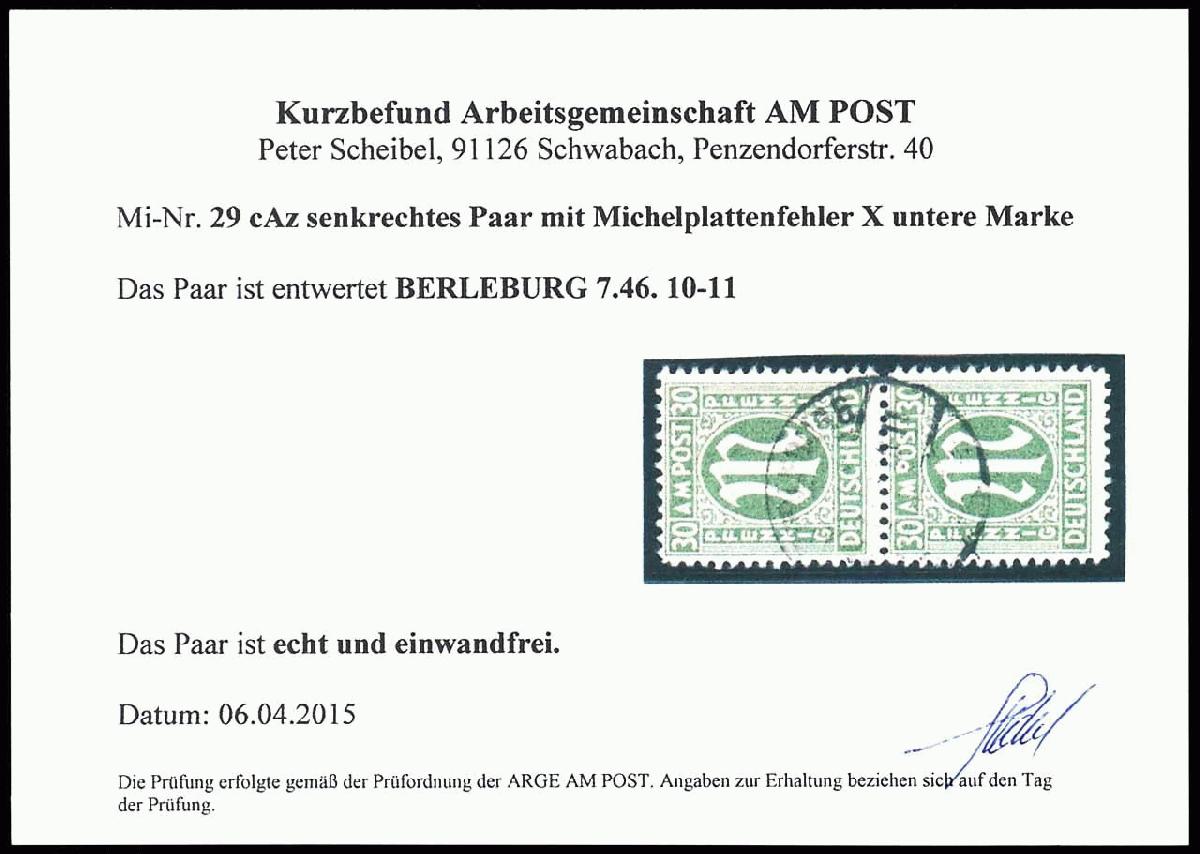 | Zusatzinformationen und Suchstichworte: | Dr. Reinhard Fischer 193. Auktion 21. - 22. Juli 2023 Los 6679 Bizone 30 Pfg. AM-Post, senkr. Paar, untere Marke mit Plattenfehler "P ohne Abstrich", gest. BERLEBURG, Fotobefund Arge/Scheibel: "echt und einwandfrei", Mi. 160.- unterbewertet Ausruf 50,00 EUR |