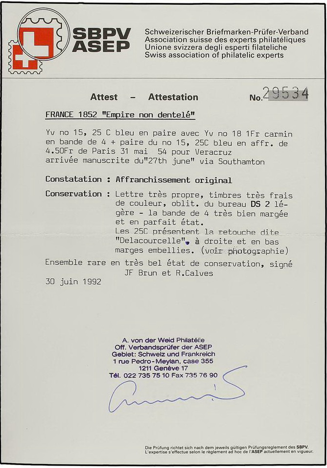 | Prüfer: | von der Weid, Alain (SBPV / ASEP (Schweizerischer Briefmarken-Prüfer-Verband)) |