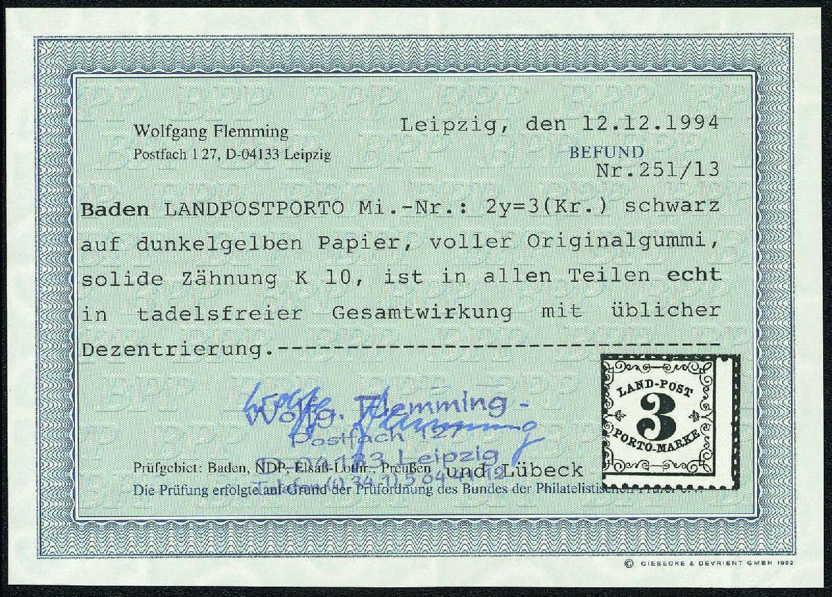 | Prüfgebiet: | Altdeutschland Baden Landpost-Portomarken |