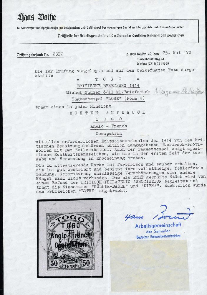 | Prüfgebiet: | Deutsche Kolonien Togo Britische Besetzung |