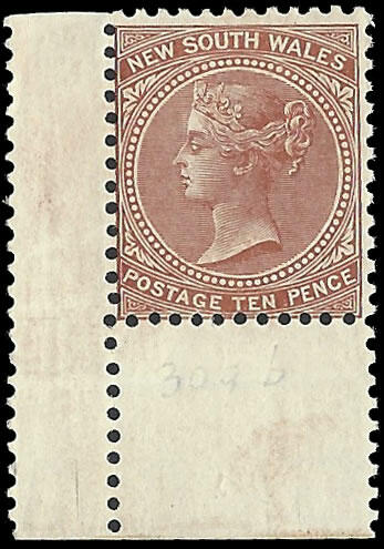 | Zusatzinformationen und Suchstichworte: | Filat AG Shop Neu Los 6258 (D) Neusuedwales 1899 QV 9d on 10d dull brown VARIETY ALBINO SURCHARGE (SG 309b). Superb M corner marginal example, albino NINE PENCE surcharge clearly visible on reverse. Most attractive representation of this scarce stamp. Photo-cert: Eichele BPB: "A very fresh example of this distinctive variety, especially elusive as a corner copy." (cv£275). See additional image and of certificate below Festpreis 415,00 CHF |