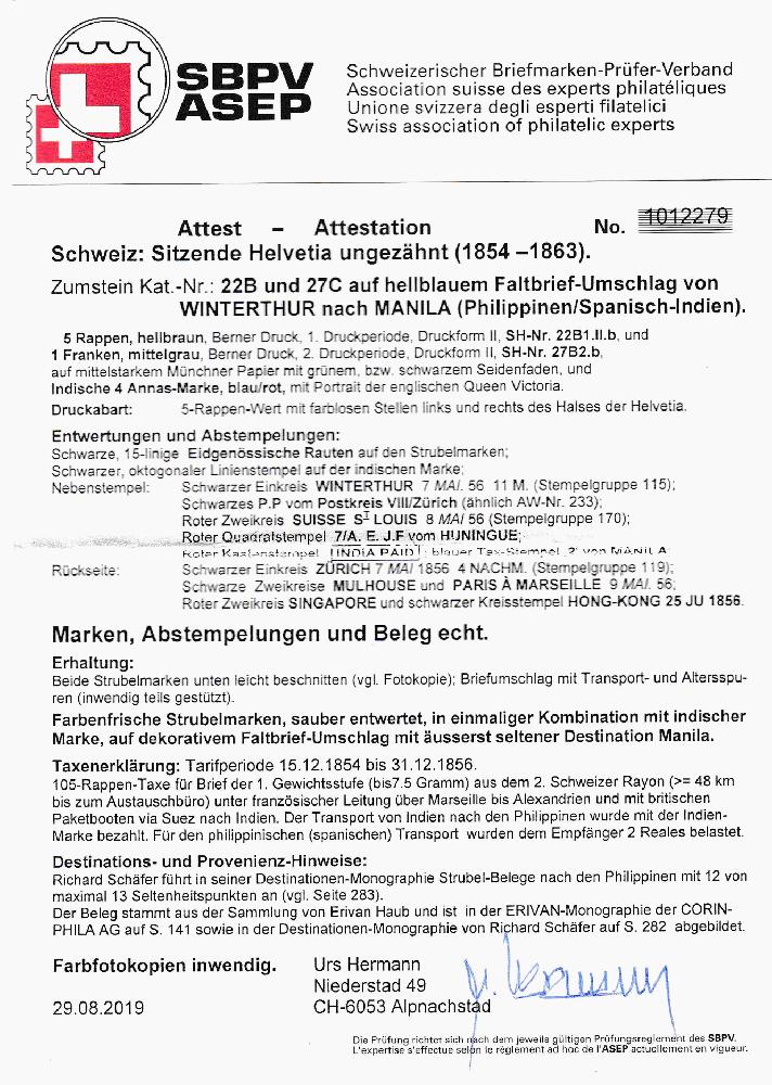 | Prüfer: | Hermann, Urs (SBPV / ASEP (Schweizerischer Briefmarken-Prüfer-Verband)) |