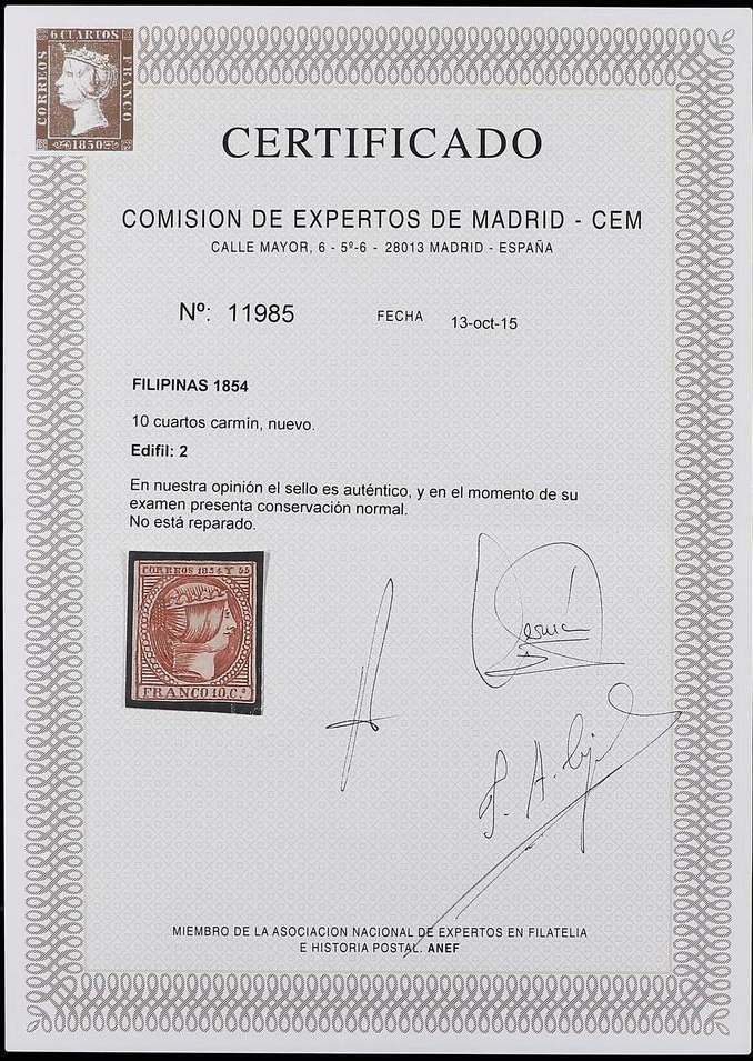 | Zusatzinformationen und Suchstichworte: | Soler y Llach - 788. Auktion 4. - 5. Juli 2023 Los 2575 Philippinen FILIPINAS. 10 cuartos carmín. Muy buen ejemplar. Cert. CEM. Ed.2 Zuschlag 340,00 EUR |
