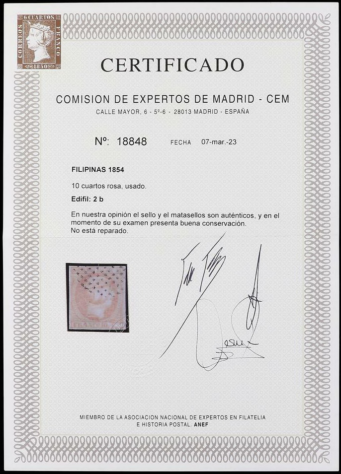 | Zusatzinformationen und Suchstichworte: | Soler y Llach - 788. Auktion 4. - 5. Juli 2023 Los 2578 Philippinen FILIPINAS. 10 cuartos rosa. Muy bonito ejemplar, mat. círculo de puntos. Cert. CEM. Ed.2b Zuschlag 220,00 EUR |