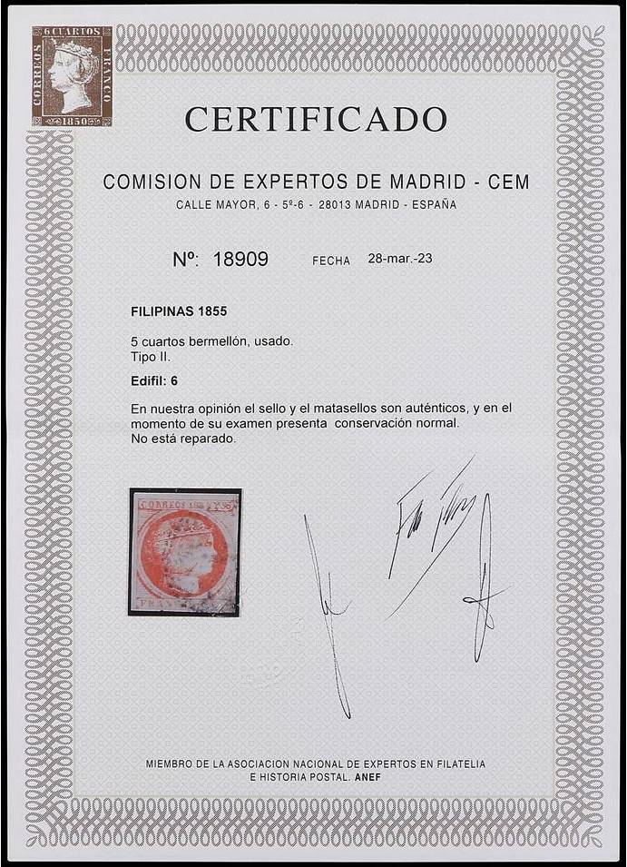 | Zusatzinformationen und Suchstichworte: | Soler y Llach - 788. Auktion 4. - 5. Juli 2023 Los 2586 Philippinen FILIPINAS. 5 cuartos bermellón. Muy buen ejemplar. Tipo II. Cert. CEM. Ed.6 Zuschlag 1.200,00 EUR |