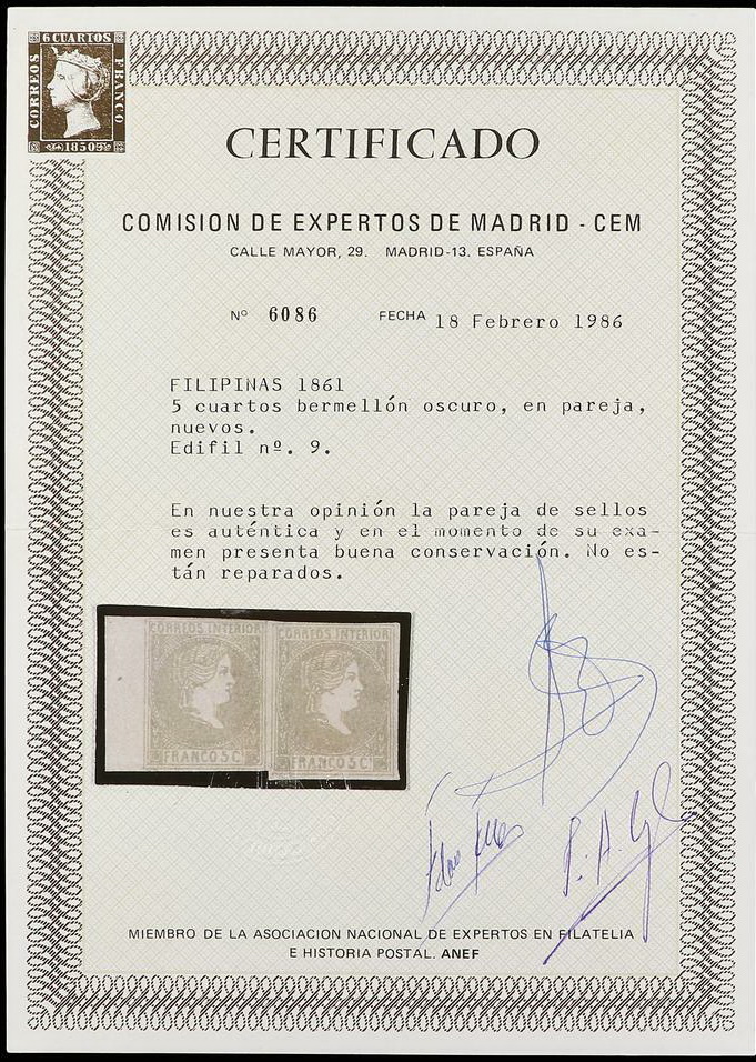 | Zusatzinformationen und Suchstichworte: | Soler y Llach - 788. Auktion 4. - 5. Juli 2023 Los 2627 Philippinen FILIPINAS. 5 cuartos bermellón. Pareja, borde de hoja. Sello muy raro e infravalorado en el catálogo. PRECIOSA. Cert. CEM. Ed.9 (2) Zuschlag 175,00 EUR |