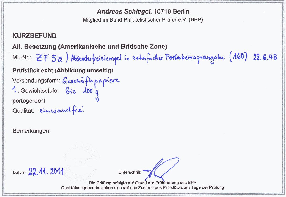 | Prüfgebiet: | Alliierte Besetzung Bizone |