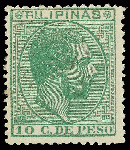 | Zusatzinformationen und Suchstichworte: | Soler y Llach - 788. Auktion 4. - 5. Juli 2023 Los 1236 Philippinen FILIPINAS. 1886-9. 10 centavos verde. Buen ejemplar. Se acompaña el resto de la serie Ed. 67/74 y los valores Ed. 72 y 74 tienen algún defecto en el dentado. Ed.75. Cat. 565€ Zuschlag 130,00 EUR |