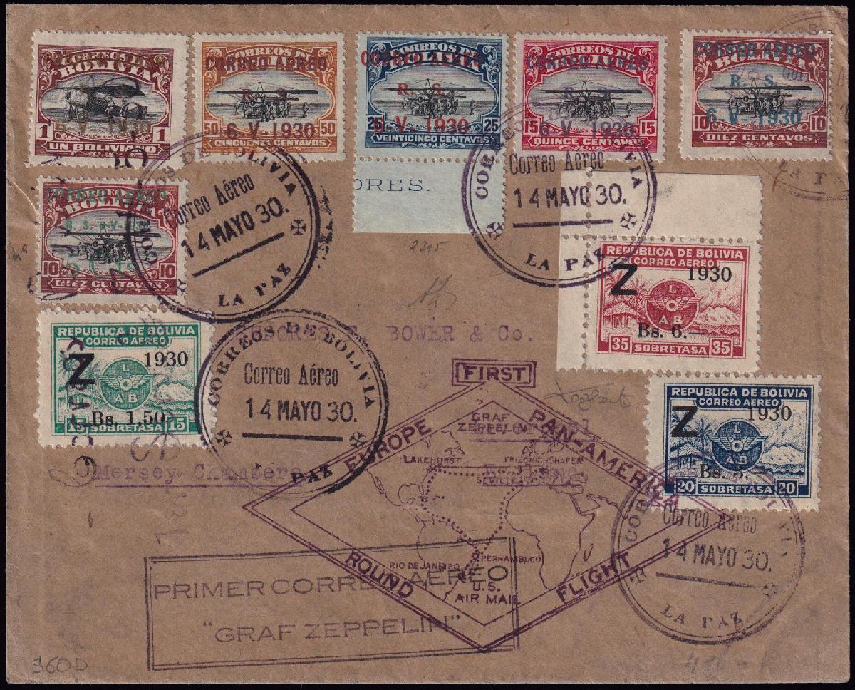 | Zusatzinformationen und Suchstichworte: | 182. Laser Invest Auktion - Live Auktion 16. Juni 2023 Los 204 Bolivien Bolivien. Süden AMERIKA RUCKFAHRT (Sieger 60D). Brief aus La Paz nach Liverpool mit Mehrfachfrankatur einbegriffen 6 bolivianische Luftpostmarken und so die 3 Zeppelin Marken gestempelt "La PAZ14. MAYO. ". Flugsonderstempel und Ankunft date-stamps auf der Rückseite. Selten Ausruf 350,00 EUR |