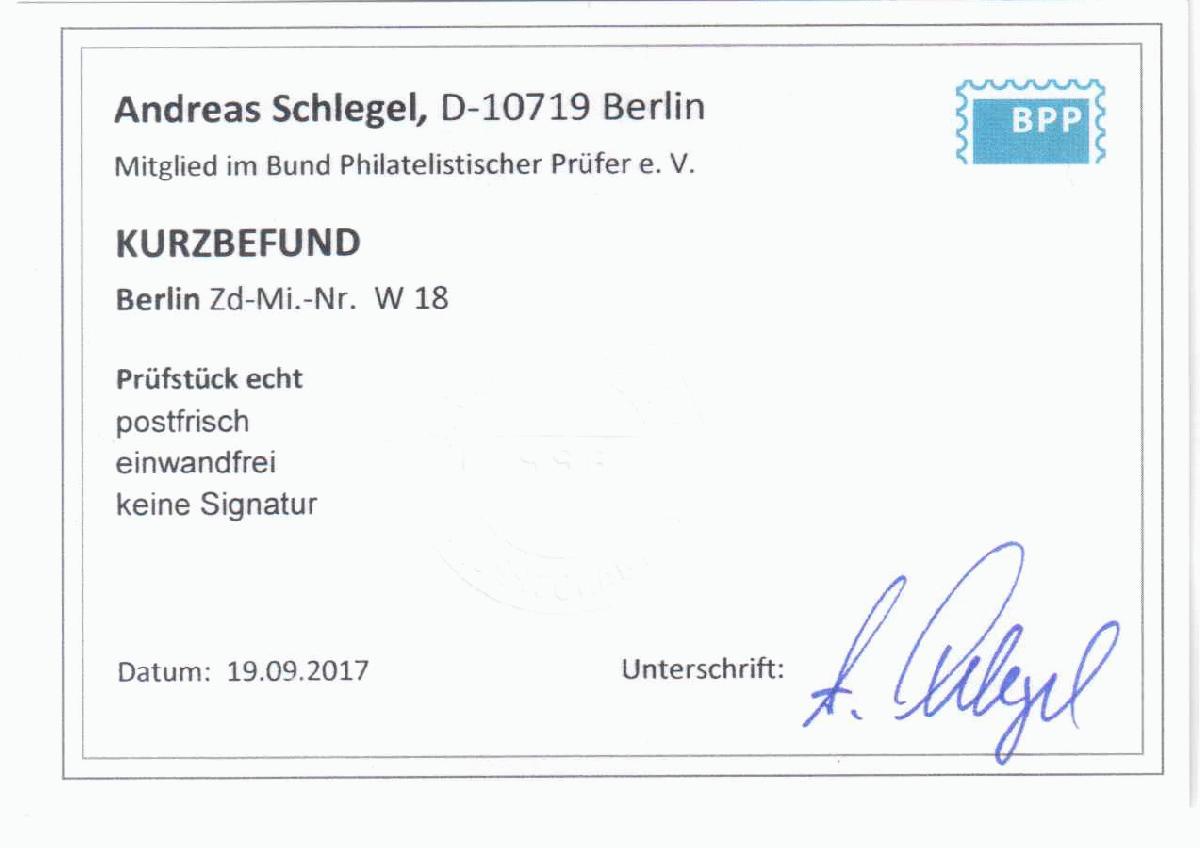 | Prüfer: | Schlegel, Andreas (BPP (Bund Philatelistischer Prüfer)) |