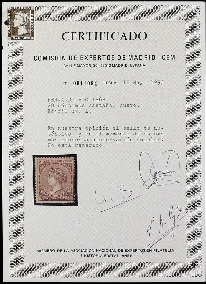 | Zusatzinformationen und Suchstichworte: | Soler y Llach - 790. Auktion - Spanien, Kolonien und der Rest der Welt 11. - 12. Juli 2023 Los 1184 Fernando Poo COLONIAS ESPAÑOLAS: FERNANDO POO. 20 cts. de escudo castaño. Buen ejemplar. RARO. Cert. CEM. Ed.1. Cat. 925€ Zuschlag 110,00,00 EUR |