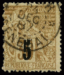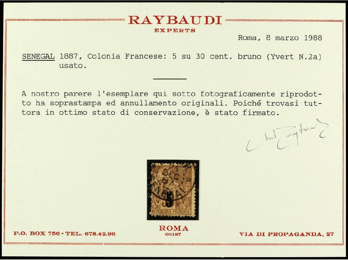 | Zusatzinformationen und Suchstichworte: | Soler y Llach - 790. Auktion - Spanien, Kolonien und der Rest der Welt 11. - 12. Juli 2023 Los 1636 Senegal SENEGAL. 5 cts. s. 30 cts. castaño, habilitación tipo II. Cert. RAYBAUDI. Yv.2a. Yvert.550€ Zuschlag 60,00 EUR |
