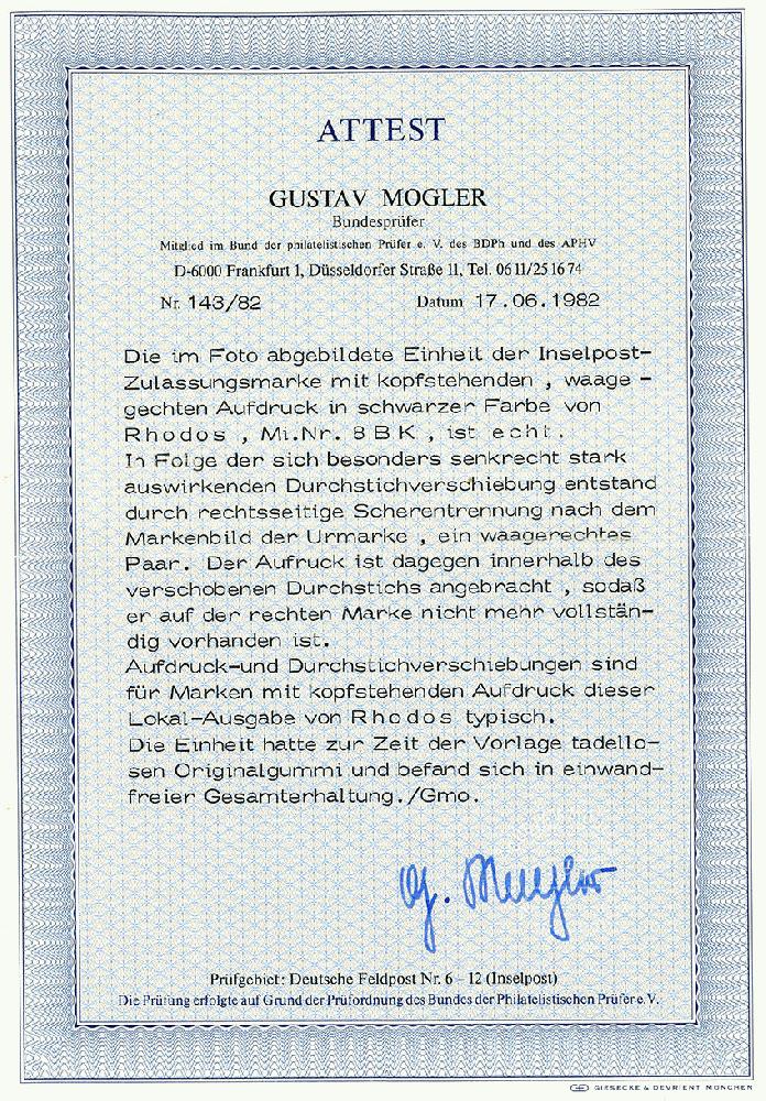 | Prüfer: | Mogler, Gustav (BPP (Bund Philatelistischer Prüfer)) |