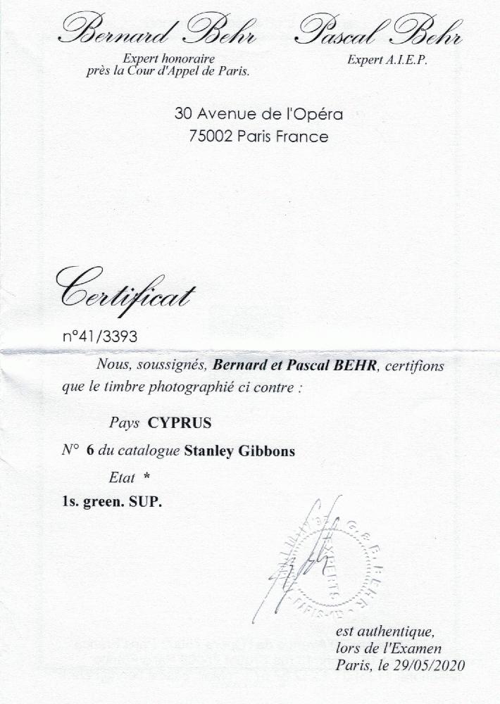 | Prüfer: | Behr, Bernard und Pascal (AIEP (Association internationale des experts en philatélie)) |