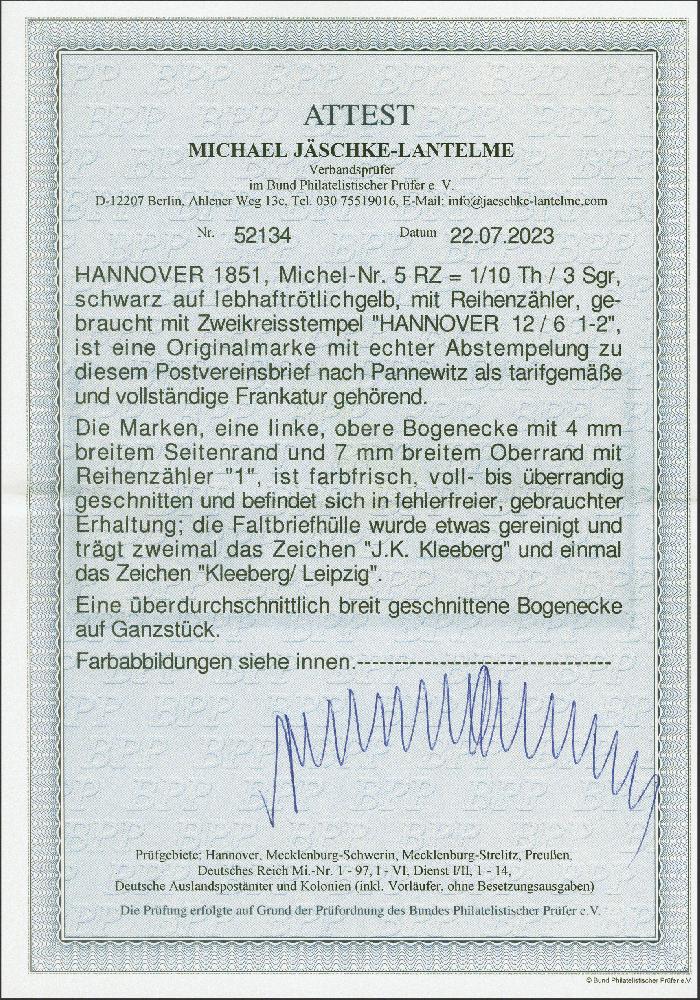 | Prüfer: | Jäschke-Lantelme, Michael (BPP (Bund Philatelistischer Prüfer)) |