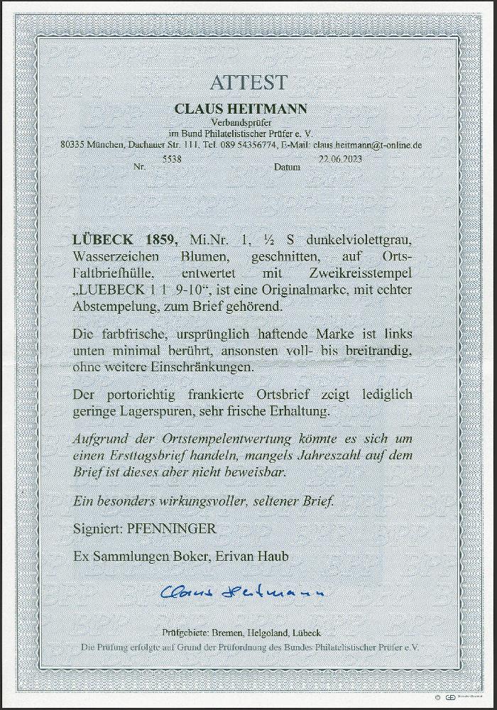 | Prüfer: | Heitmann, Claus (BPP (Bund Philatelistischer Prüfer)) |