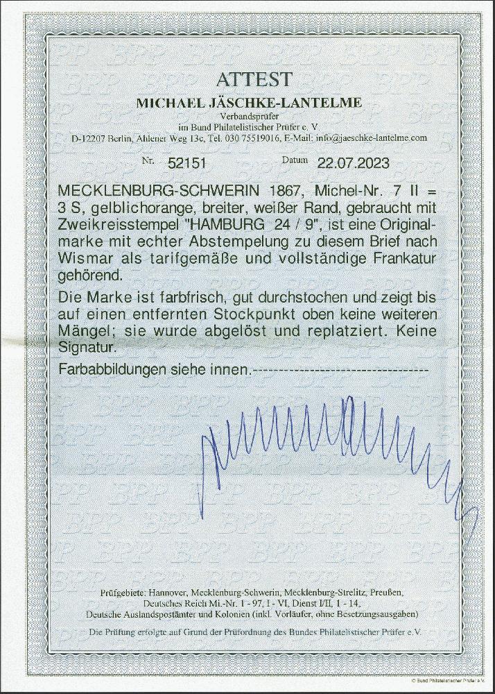 | Prüfer: | Jäschke-Lantelme, Michael (BPP (Bund Philatelistischer Prüfer)) |