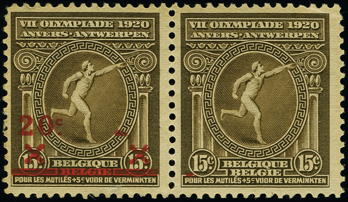 | Zusatzinformationen und Suchstichworte: | 382. Auktion Heinrich Köhler 18. – 23. September 2023 Los 1005 1921, Olympic issue with surcharge 20 o. 15 c., horizontal pair, left stamp with "20" missing, right stamp without overprint at all, unused, the left stamp thinnings, very rare. Opinion Trachtenberg (1981) and certificate Raybaudi (2005) Ausruf 200,00 EUR |