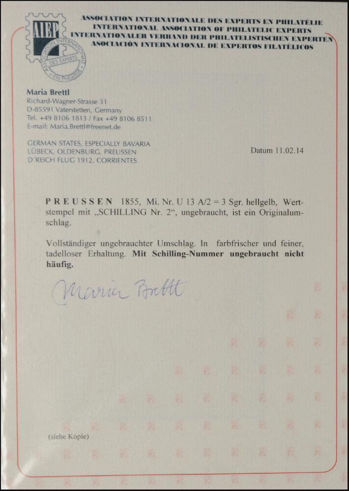 | Prüfer: | Brettl, Maria (AIEP (Association internationale des experts en philatélie)) |