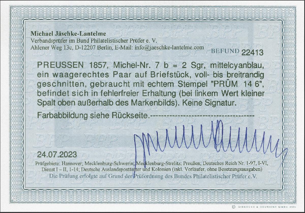 | Prüfer: | Jäschke-Lantelme, Michael (BPP (Bund Philatelistischer Prüfer)) |