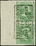| Zusatzinformationen und Suchstichworte: | 382. Auktion Heinrich Köhler 18. – 23. September 2023 Los 202 4 Pfennige dunkelolivgrün, senkrechtes Paar vom linken Bogenrand, farbfrisch und allseits breitrandig, links mit ca. 16 mm Seitenrand mit Reihenzählern "5" und "6", sehr schön entwertet durch vertikal aufgesetzten Rahmenstempel "BERLIN STADT-POST XVIII 21 2 GESUNDBRUNNEN". Im breiten Bogenrand 2 senkrechte Bugspuren, die Marken leicht gereinigt, sonst einwandfrei. Ein ganz außergewöhnliches Stück mit einem außerordentlich seltenen Stempel. Signiert Drahn und Kruschel, Fotoattest Jäschke-L. BPP (2022) Ausruf 500,00 EUR |