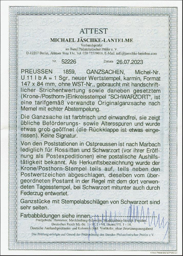 | Prüfgebiet: | Altdeutschland Preussen Ganzsachen |