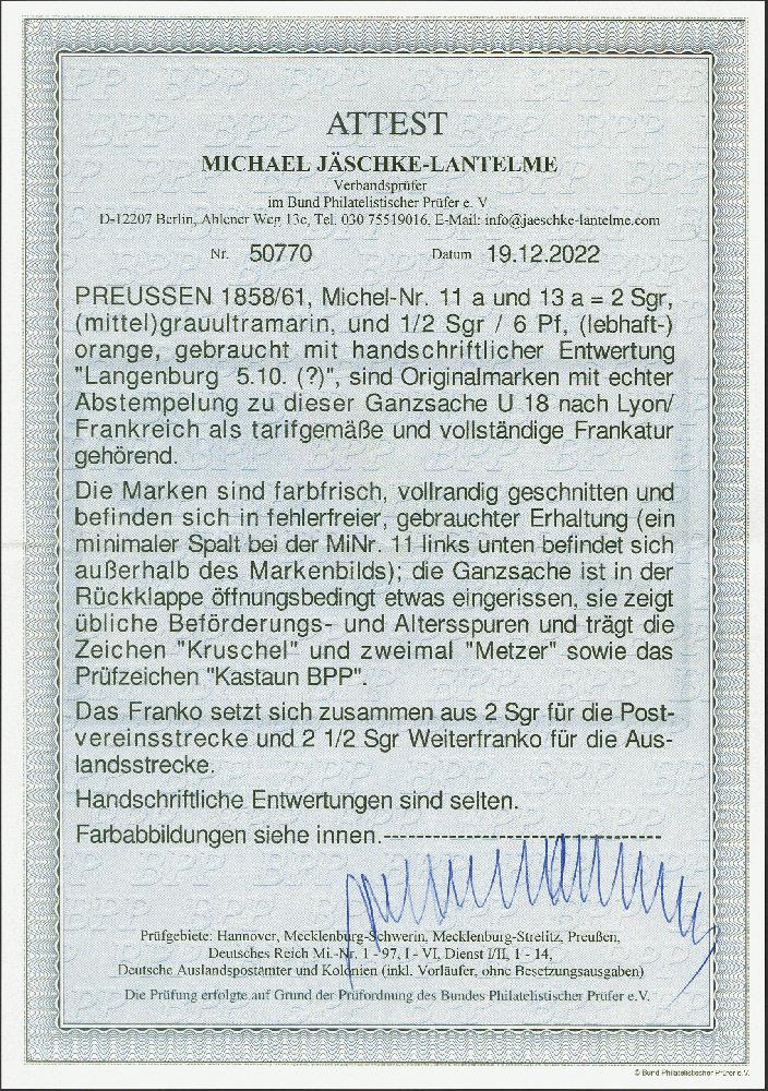 | Prüfer: | Jäschke-Lantelme, Michael (BPP (Bund Philatelistischer Prüfer)) |
