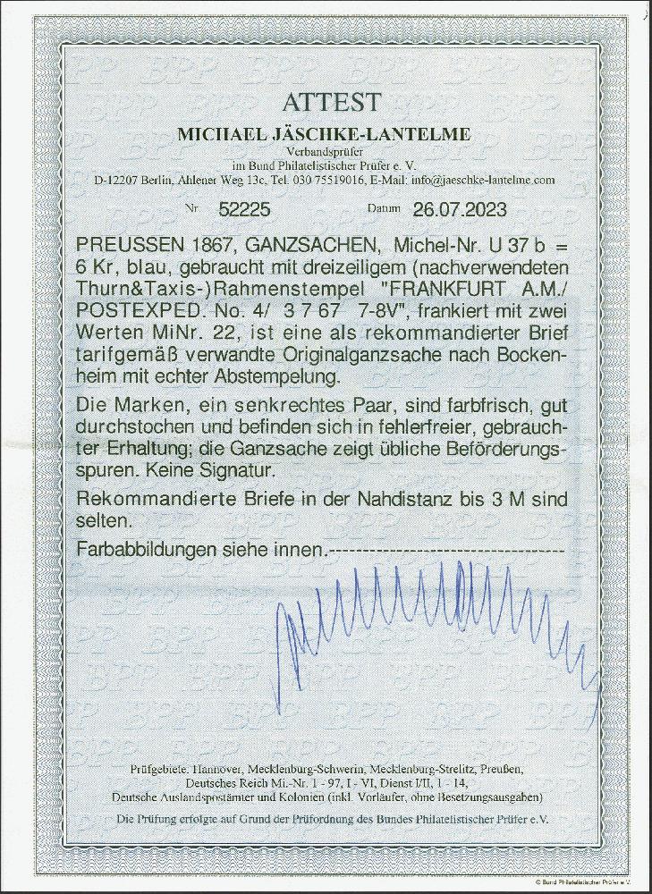 | Prüfgebiet: | Altdeutschland Preussen Ganzsachen |