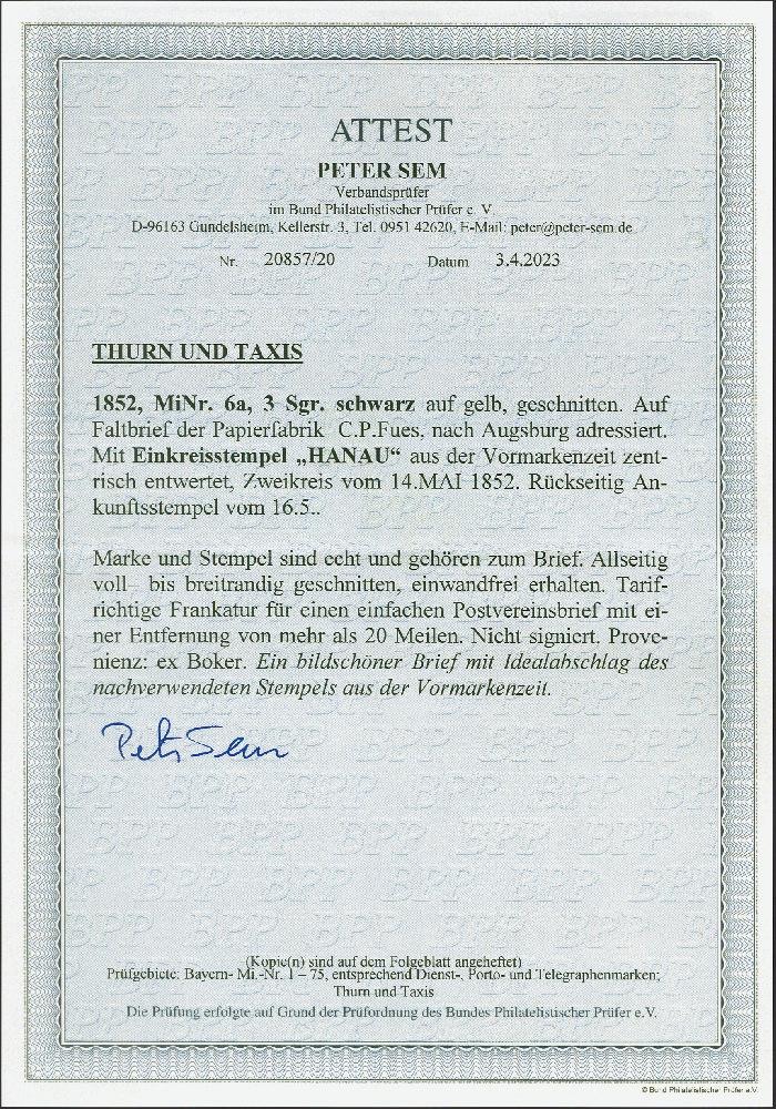 | Prüfgebiet: | Altdeutschland Thurn und Taxis |