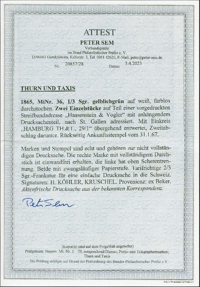 | Prüfgebiet: | Altdeutschland Thurn und Taxis |