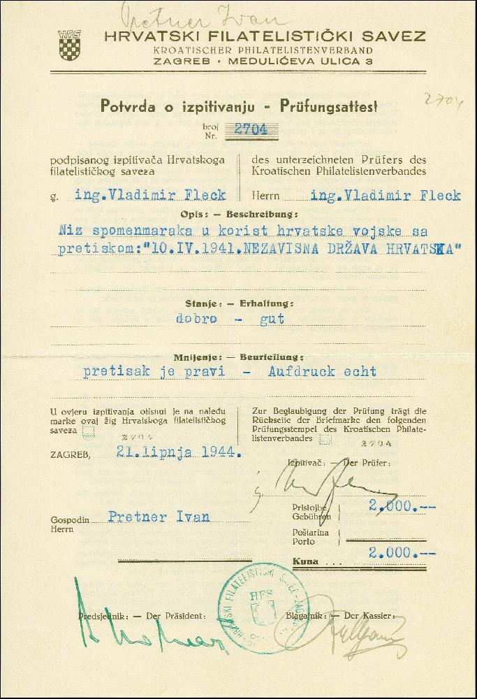 | Prüfer: | Fleck, Vladimir (FSH (Filatelistički Savez Hravtske)) |