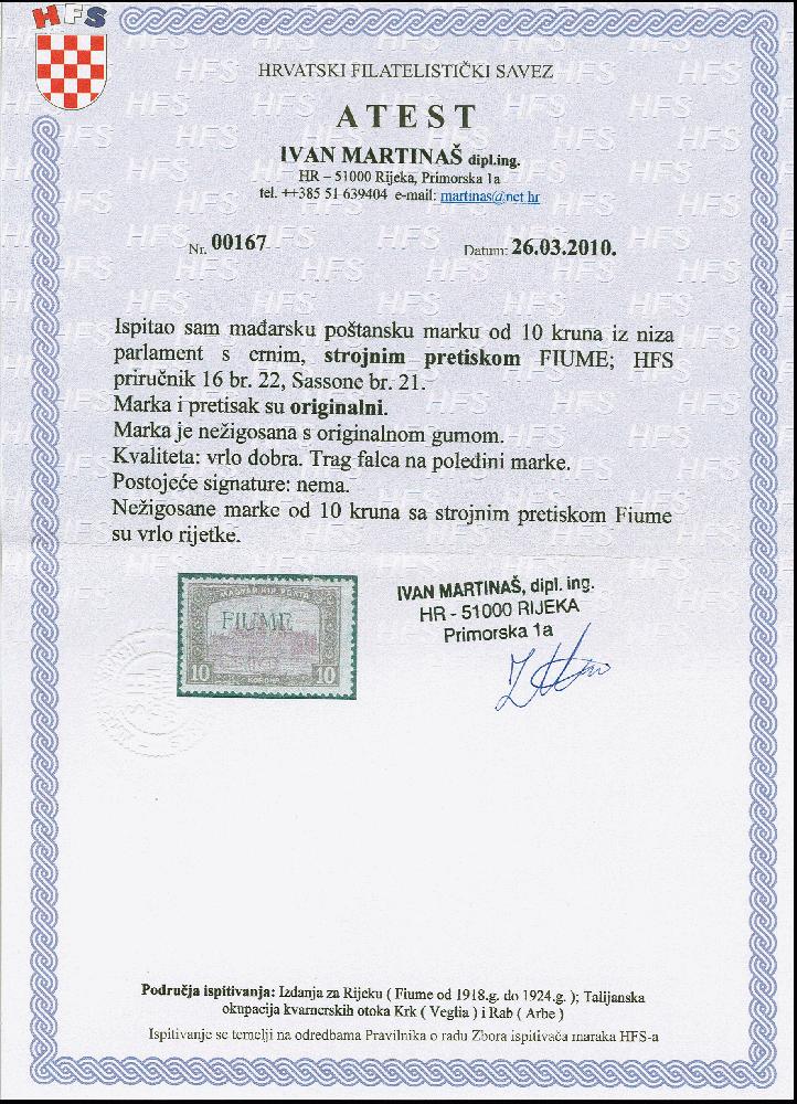 | Prüfer: | Martinaš, Ivan (HFS (Hrvatski Filatelistički Savez)) |