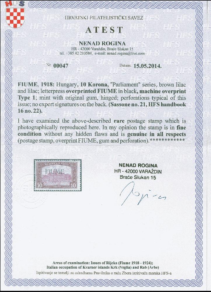 | Prüfer: | Rogina, Nenad (HFS (Hrvatski Filatelistički Savez)) |