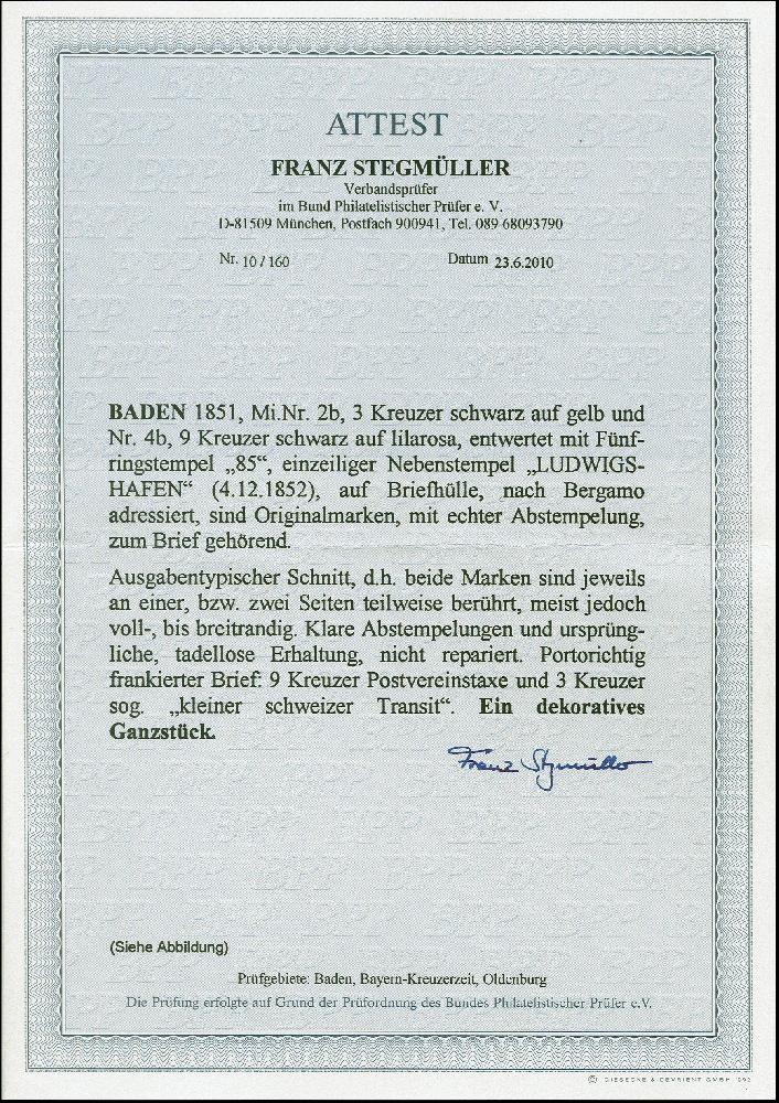 | Prüfer: | Stegmüller, Franz (BPP (Bund Philatelistischer Prüfer)) |