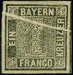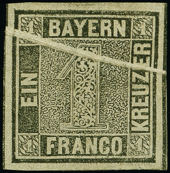 | Zusatzinformationen und Suchstichworte: | 382. Auktion Heinrich Köhler 18. – 23. September 2023 Los 3714 1 Kreuzer grauschwarz, Platte 1, allseits breitrandig, mit markanter Druckfalte, wahrscheinlich aus der Makulatur stammend, ungebraucht ohne Gummi, tadellos. Signiert Pfenninger und Fotoattest Stegmüller BPP (2016) Ausruf 500,00 EUR |