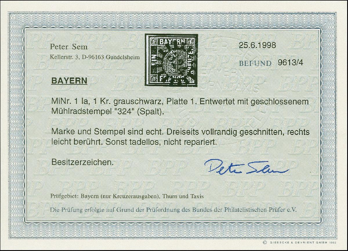 | Prüfer: | Sem, Peter (BPP (Bund Philatelistischer Prüfer)) |