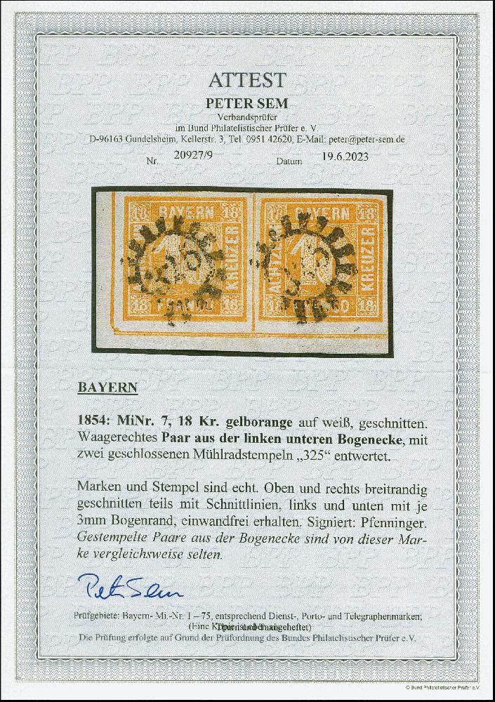 | Prüfer: | Sem, Peter (BPP (Bund Philatelistischer Prüfer)) |