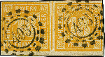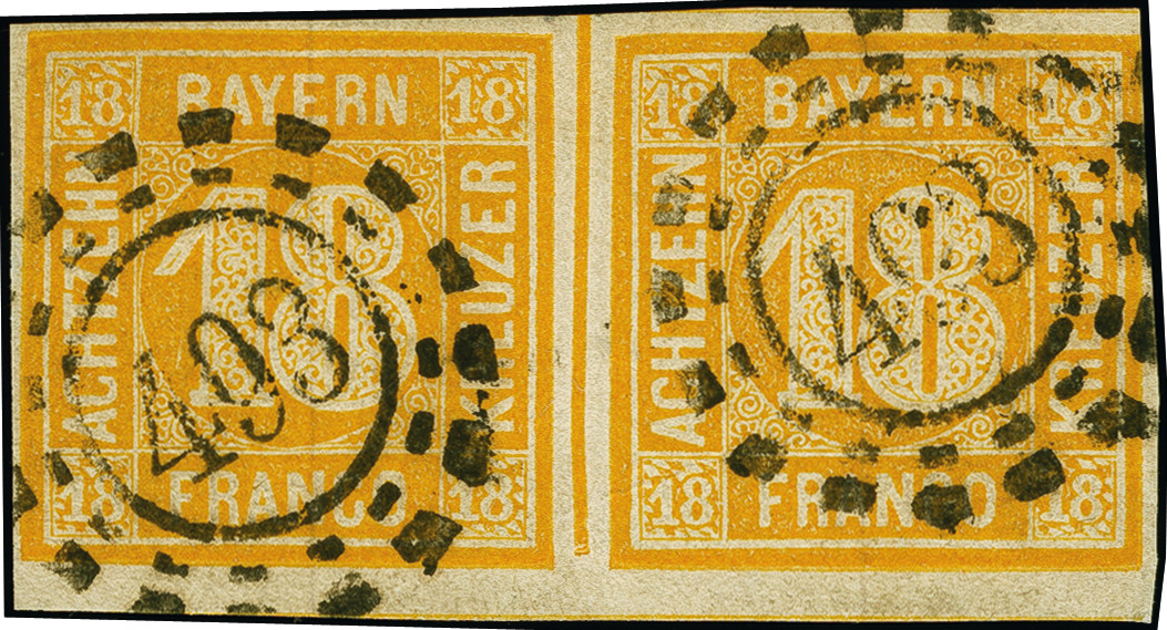| Zusatzinformationen und Suchstichworte: | 382. Auktion Heinrich Köhler 18. – 23. September 2023 Los 3765 18 Kr. gelblichorange, waagerechtes Paar, rechts oben noch voll-, sonst voll- bis breitrandig, unten mit schmalem Bogenrand, sauber entwertet durch oMR "493" SPEYER. Frische und tadellose Erhaltung (rückseitig links kleine Schürfung im Außenrand). Fotoattest Sem BPP (2005) Ausruf 250,00 EUR |