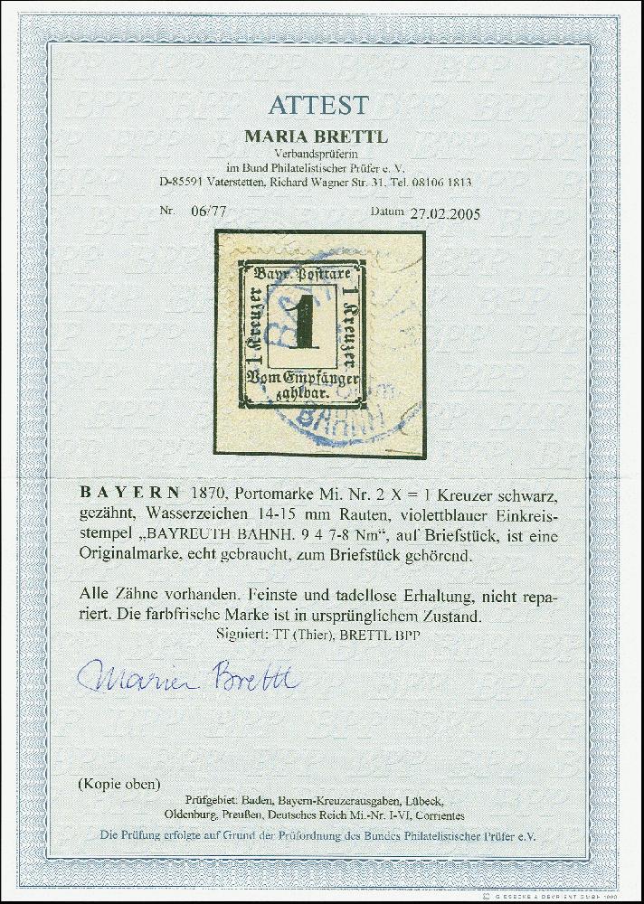 | Prüfgebiet: | Altdeutschland Bayern Portomarken |