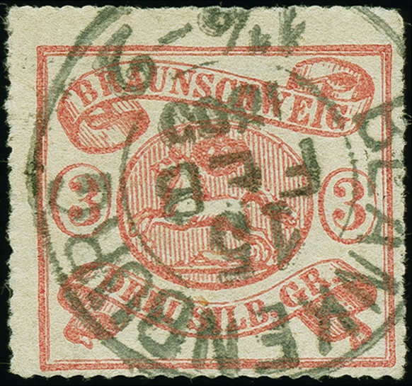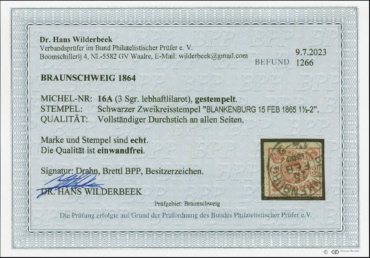 | Zusatzinformationen und Suchstichworte: | 382. Auktion Heinrich Köhler 18. – 23. September 2023 Los 3897 3 Sgr. lebhaftlilarot, farbfrisch und allseits gut durchstochen, sauber mit Dk. "BLANKENBURG 15 FEB 1865" entwertet, tadellos, u.a. sign. Drahn und Brettl BPP sowie Befund Dr. Wilderbeek BPP (2023) Ausruf 120,00 EUR |