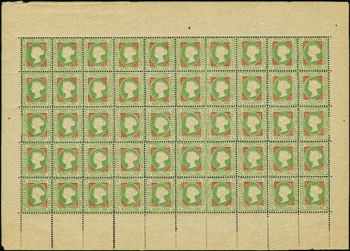 | Zusatzinformationen und Suchstichworte: | 382. Auktion Heinrich Köhler 18. – 23. September 2023 Los 4025 1869, ½ Sch. lebhaftbläulichgrün/karmin im farbfrischen Originalbogen zu 50 Stück mit allen Rändern, postfrisch bzw. zwei Werte ungebraucht, teils gering angetrennt, ein sehr seltener Bogen in frischer Erhaltung, Fotoattest Schulz BPP (1993) Ausruf 2.500,00 EUR |