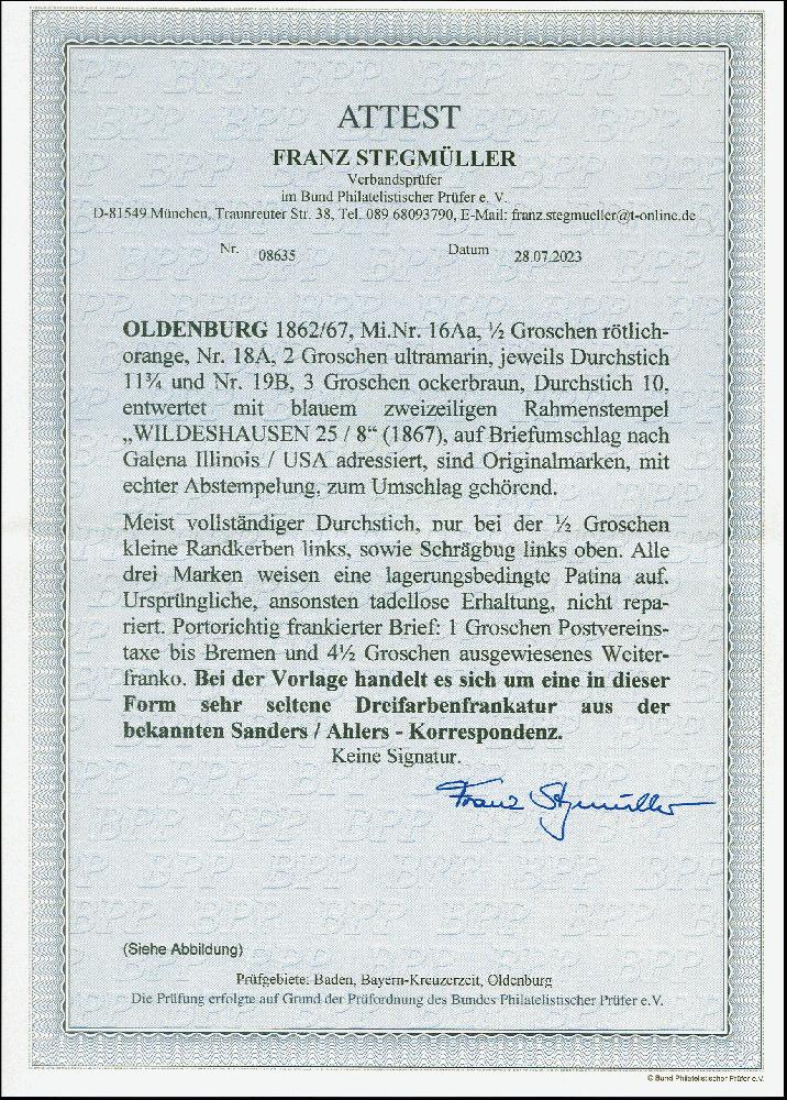| Prüfgebiet: | Altdeutschland Oldenburg |