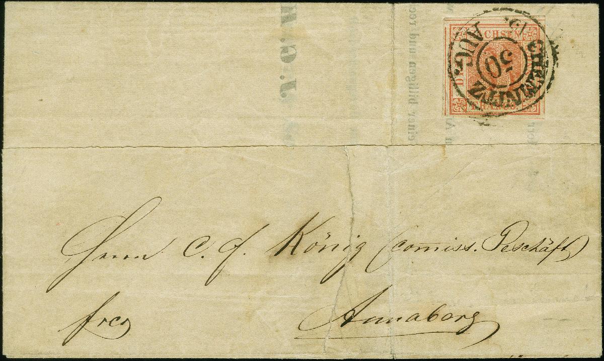 | Zusatzinformationen und Suchstichworte: | 382. Auktion Heinrich Köhler 18. – 23. September 2023 Los 4092 3 Pfg., Platte II, Typ 9, frische Farbe, allseits sehr breitrandig, dreiseitig mit kompletten Zwischenlinien, unten mit Teilen der Zwischenlinie, mit klar aufgesetztem DKr. "CHEMNITZ 15 AUG 50" auf kompletter Drucksache nach Annaberg. Das Briefpapier mit etwas Patina, sonst tadellos. Ein seltenes Ganzstück mit weit überdurchschnittlicher Marke. Fotoattest Rismondo BPP (2000) Ausruf 7.000,00 EUR |
