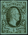| Zusatzinformationen und Suchstichworte: | 382. Auktion Heinrich Köhler 18. – 23. September 2023 Los 4104 ½ Ngr. a. hellblau, der Farbfehldruck, sehr schön farbfrisch und allseits gleichmäßig breit gerrandet, ungebraucht mit frischem Originalgummi. Sehr schöne und tadellose Erhaltung, ohne die bei den meisten Stücken vorkommenden Sandkornlöcher. Zweifellos eines der schönsten Exemplare dieser seltenen Abart. Signiert Friedl mit Fotoattest (1952), Fotoattest Philatelic Foundation (1949) und Qualitäts-Prüfungsbefund Maria Brettl (1994) Ausruf 7.000,00 EUR |