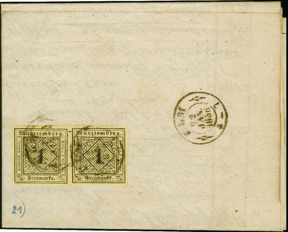 | Zusatzinformationen und Suchstichworte: | 382. Auktion Heinrich Köhler 18. – 23. September 2023 Los 4155 1851, 1 kr. altelfenbein im waagerechten Paar, farbfrisch und allseits breitrandig geschnitten mit DKr. "ULM 22 JAN 1856" auf Drucksache in die Schweiz mit Ankunftsstempel "SOLOTHURN 24 JAN 56", wie üblich fehlt die Schleife, unten links kleiner Eingangsvermerk, eine sehr seltene und attraktive Frankatur, in dieser Verwendung sind nur zwei weitere Ganzstücke registriert, Fotoattest Heinrich BPP (2023) Ausruf 500,00 EUR |