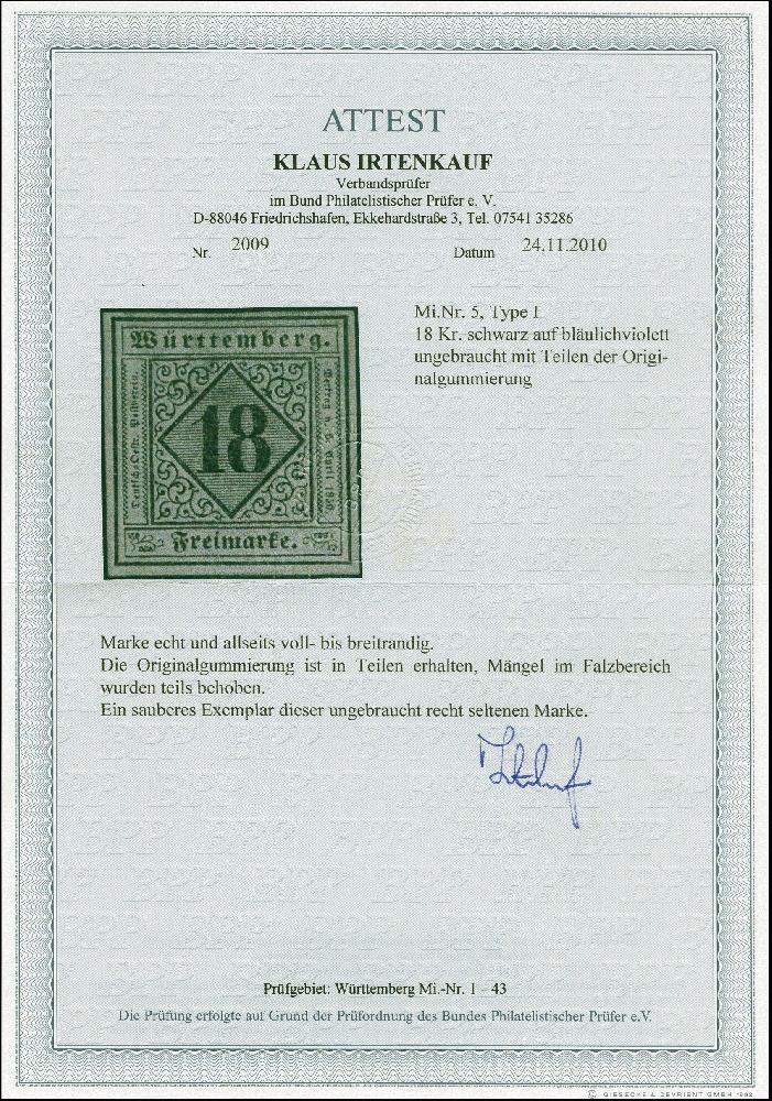 | Prüfer: | Irtenkauf, Klaus (BPP (Bund Philatelistischer Prüfer)) |