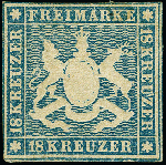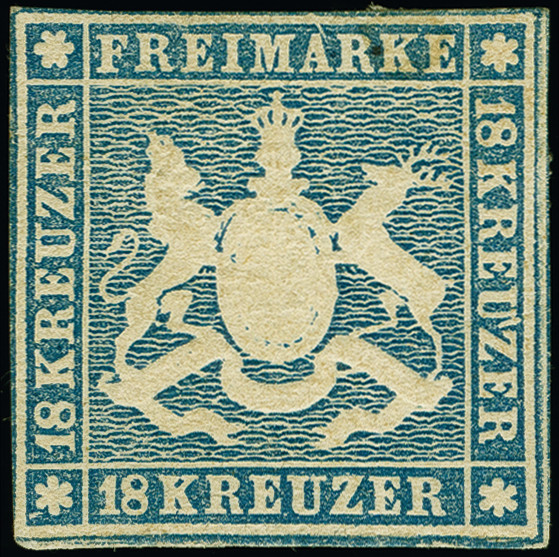 | Zusatzinformationen und Suchstichworte: | 382. Auktion Heinrich Köhler 18. – 23. September 2023 Los 4189 18 Kr. blau, farbfrisch mit guter Wappenprägung und in insgesamt recht gutem, ausgabetypischem Randlinienschnitt, rechts überrandig, mit Plattenfehler "Apostroph beim U von KREUZER", sauber ungebraucht, tadellos, eine ausgesprochen seltene Marke, u.a. sign. Thier sowie Fotoattest Heinrich BPP (2023) Ausruf 800,00 EUR |